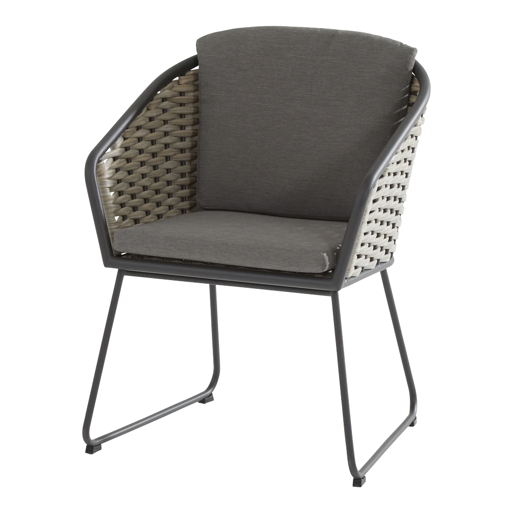 De 4 Seasons Outdoor Bo tuinstoel wordt geleverd inclusief een zit en een rugkussen. Het frame van de Bo diningstoel is gemaakt van antraciet RVS en afgewerkt met wicker vlechtwerk in banana weave. De tuinstoel Bo is goed te combineren met alle teak tuintafels van 4 Seasons Outdoor.