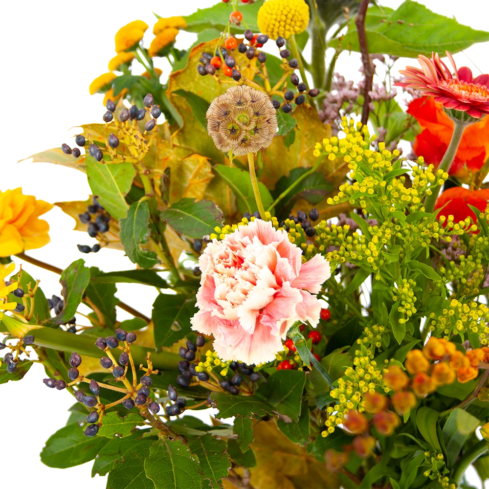 Met Boeket Vrolijk breng je een prachtig boeket in huis met de mooiste tinten voor het najaar! Verwen jezelf met verse bloemen of verras iemand anders! *Exclusief accessoires en vaas.
