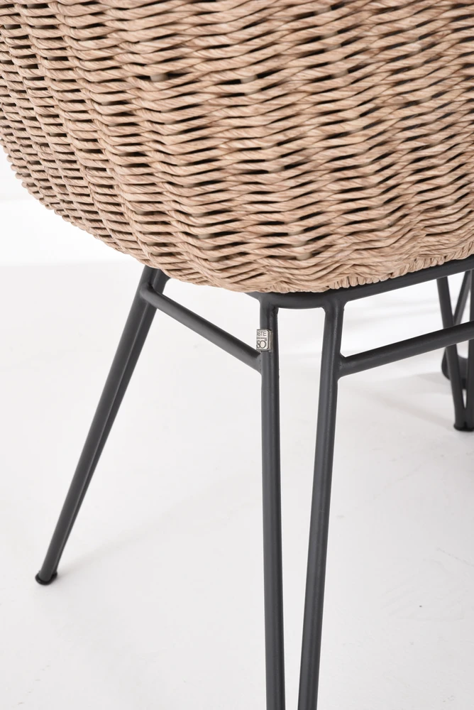 Taste 4SO Bohemian tuinstoel inclusief kussens met beige gedraaid vlechtwerk en antraciet RVS onderstel.
