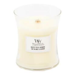 Woodwick White Tea & Jasmine Medium Candle – Geurkaars